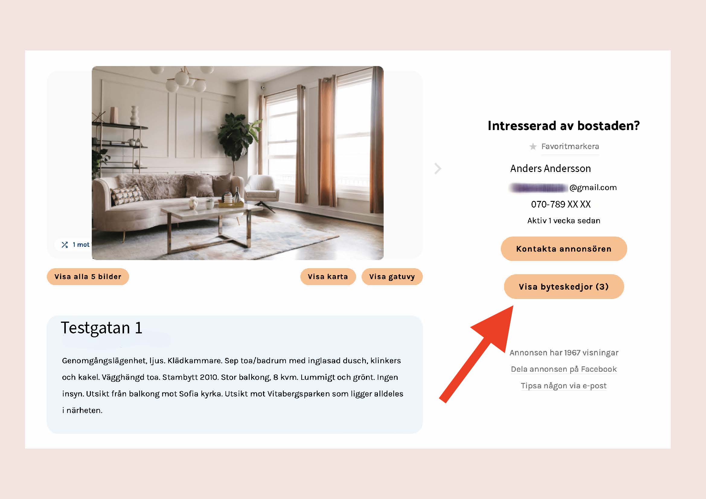 Vill du besöka annonsen för en speciell adress i byteslistan så gör du det genom att trycka på själva annonsens adress. I annonsen ser du mer information om lägeheten och oftast även en djupare bekrivning av objektet.