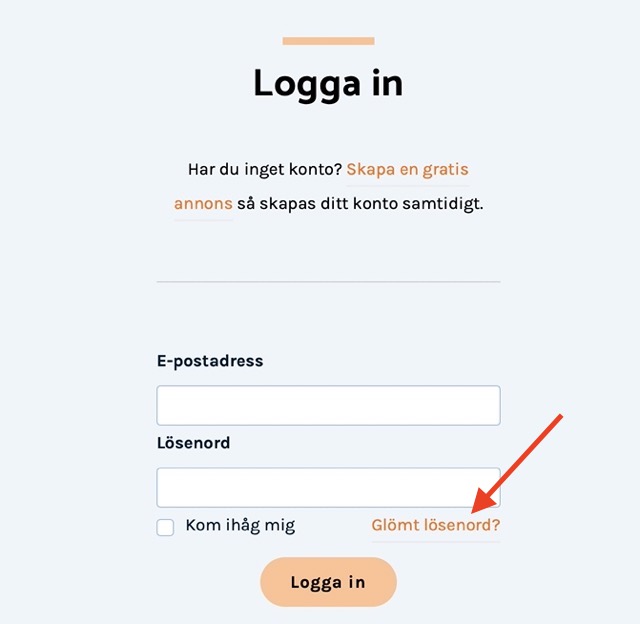 Om du glömt lösenord för ditt konto åteställer du det enkekt genom att föst klicka på "Logga in" högst upp i högra hörnet på startsidan. Fyll i din mailadress som du använde när du startade kontot och välj sedan "Glömt lösenord". Du kommer då få en länk sänt till den mailadress. Öppna din mailkorg och klicka på länken och följ enkelt instruktionerna för att byta ditt lösenord.